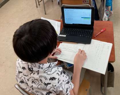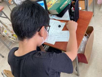 5年生が、国語「資料用いて調べたことを説明する文章を書く」学習をしています。調べるテーマを決めて、本やインターネットで資料を集め、情報カードに整理しました。地球温暖化、森林破壊、大気汚染など環境問題をテーマにして取り組んでいます。