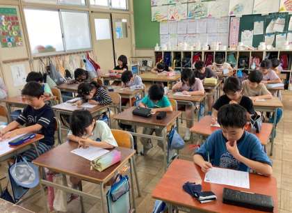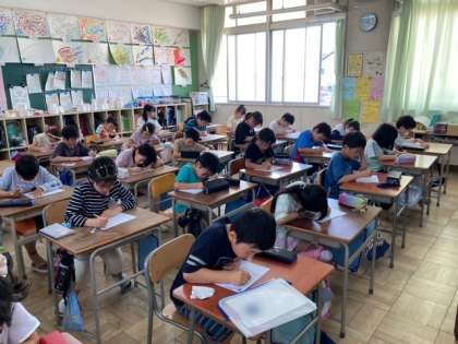 3年生が漢字テストをしました。漢字ドリルから10問出題しています。しっかりと覚えることができたでしょうか。