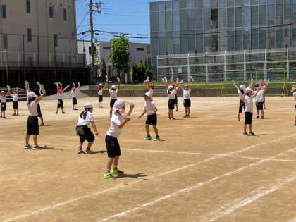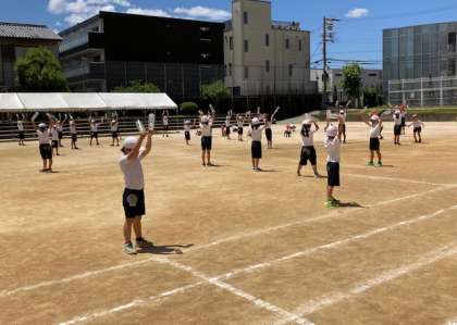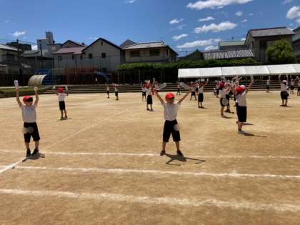 2年生が運動会の団体演技の練習をしました。両手にペットボトルを持ってリズムダンスをしました。ペットボトルをどのように使うか楽しみです。