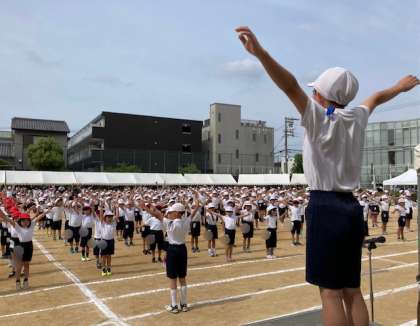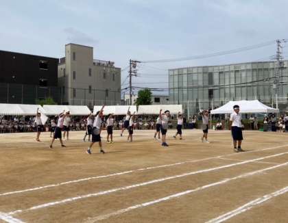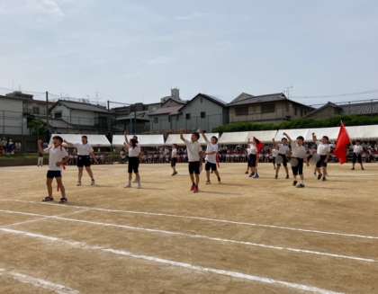 プログラム1番、はじめの体操をして、応援合戦をしました。応援団は一生懸命に練習した成果を発揮しました。