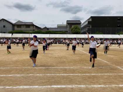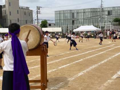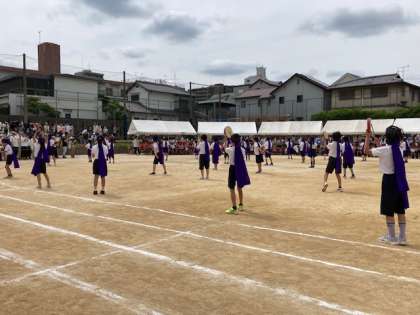 4年生の団体演技は、丸山エイサーです。パーランクの音を響かせて、ダイナミックに踊っていました。
