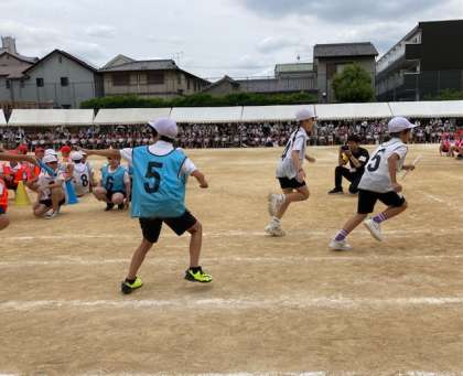 5年生の紅白対抗リレーは、心を一つにして、最後まであきらめずにバトンをつなげました。