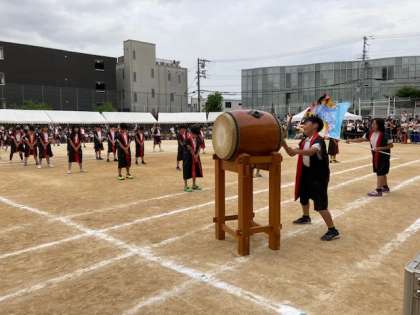 5年生の団体演技は、丸山サーラン2023です。はっぴを着て、「ソーラン、ソーラン」とかけがえが元気よく、勇壮に演じることができました。