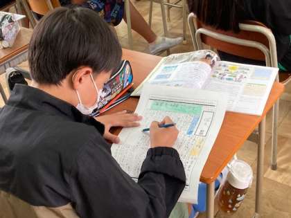 理科は、「体をめぐる血液」を学習しました。酸素を取り入れて二酸化炭素を出すこと、肺呼吸とえら呼吸について学びました。算数では、辺の長さが分数の時の体積や面積の求め方を考えました。社会科では、歴史新聞を仕上げました。