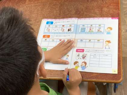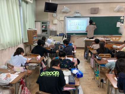 外国語活動は、英語で1週間の予定を話す音声を聞き、該当するものを見つけました。聞き取りができていました。