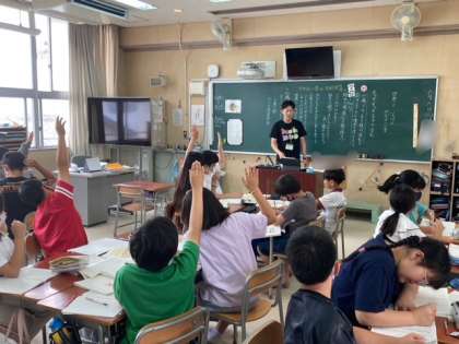 国語は「世界で一番やかましい音」を学習しています。今日は山場での王子の様子を読み取り、その理由を考えました。積極的に手があがっています。