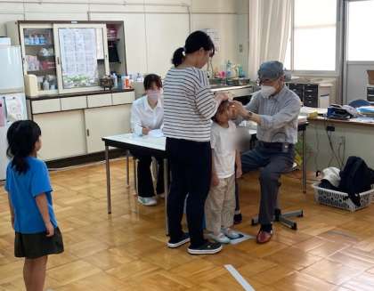今日は1年、3年、5年生が耳鼻科検診をしました。耳、鼻、のどの様子を診てもらいました。治療が必要な場合は、できれば26日(月)から始まる水泳学習までにお願いします。