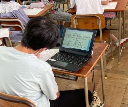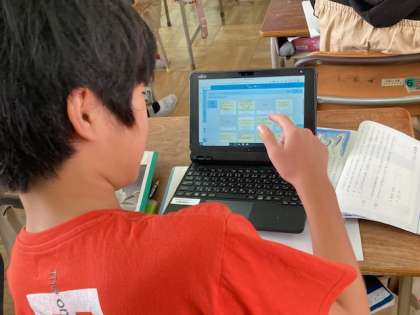 6年生は、国語「風切るつばさ」を学習しています。友だちの課題と考えでなるほどと思ったことをタブレット端末の発表ノートに書き込み、共有しました。