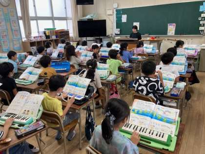 音楽は、「かえるのがっしょう」を輪唱しました。歌や鍵盤ハーモニカで音の高さに気をつけて追いかけっこしました。