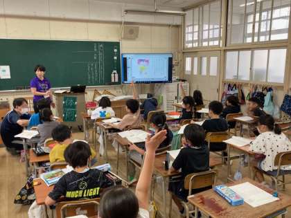 国語は「名前を見てちょうだい」を学習しています。場所、会った人たち、様子や言葉の3つ項目に分けて、読み進めてワークシートにまとめました。