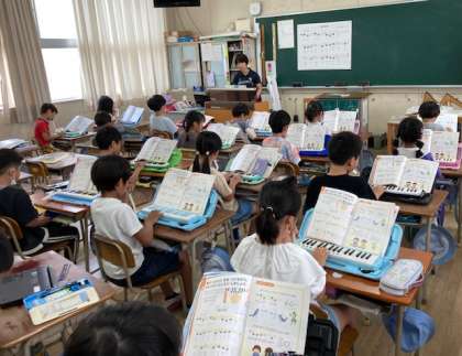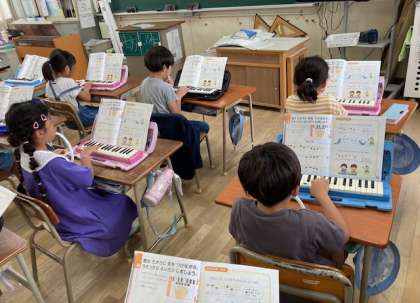 2年生が音楽で「かっこう」を鍵盤ハーモニカで吹きました。「かっこう」と歌う感じで吹くために、舌を使ってソの音を短く切るように吹きました。