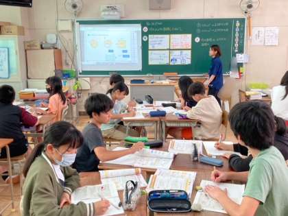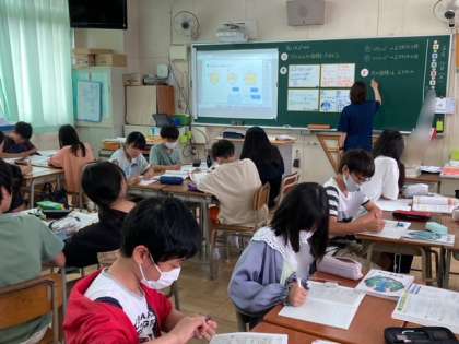 6年生が算数「円のおよその面積を求めよう」を学習しました。円の面積は正方形のおよそ2倍から4倍であることがわかりました。
