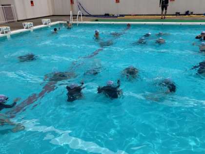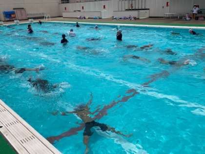 4年生が水泳学習をしました。水中じゃんけん、大の字うき、クラゲうきなどしっかりとして感覚づくりの運動をしました。