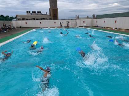 5年生の水泳学習は、まず現在の泳力を把握して、コース別に練習しました。25mプールを何回も泳ぎ、がんばって練習できました。月曜日には泳力テストをします。