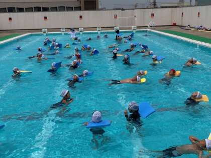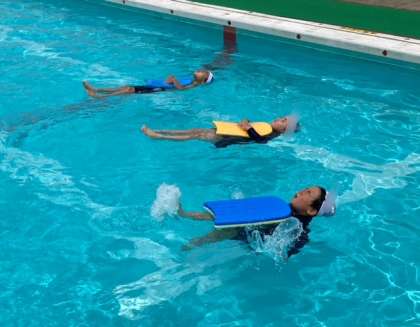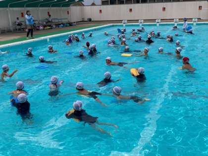 1年生の水泳学習は、ビート板を使って浮く運動遊びをしました。力を抜いて上手に浮く子が増えてきました。