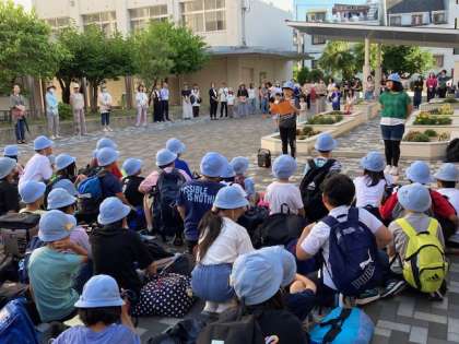 5年生が、今日から1泊2日で京都るり渓へ林間学習に行きます。7時30分から出発式をしました。班長が司会をし、実行委員が注意事項を言いました。楽しい思い出をたくさん作って来ます。教職員、保護者の皆様、お見送りありがとうございました。