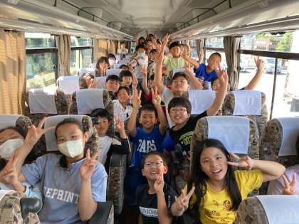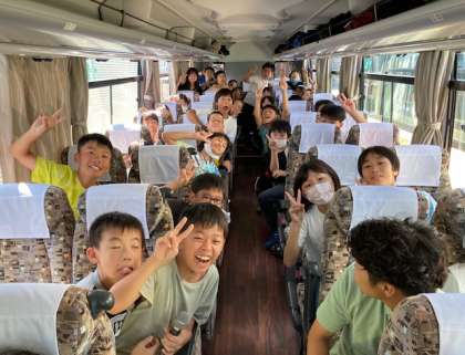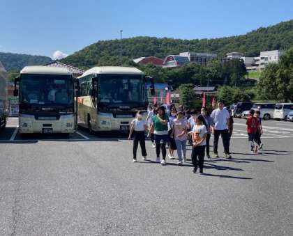 道の駅能勢でトイレ休憩をしました。全員元気です。バスの中では伝言ゲームなどクイズをしています。