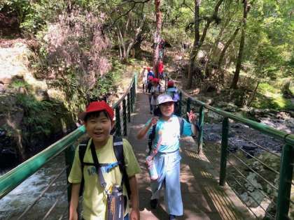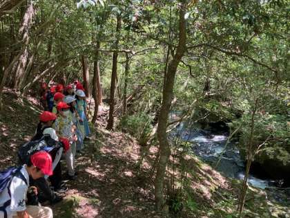 るり渓遊歩道を予定より30分も早く歩き、宿舎に無事に着きました。こちらは快晴ですが、木陰は涼しくて気持ちいいです。