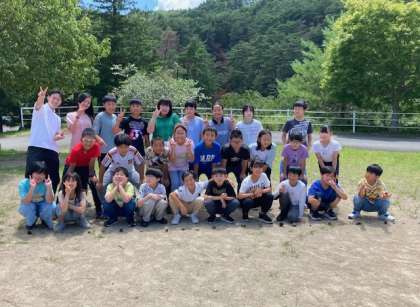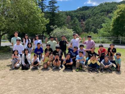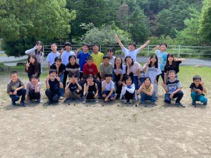 るり渓の宿舎前で記念撮影をしました。これから入所式です。