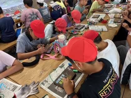 カラフルな色を使って、上手に焼き板ができました。