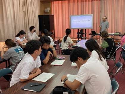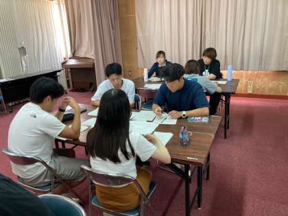 教務主任を講師として、カリキュラム・マネジメント研修をワークショップ形式で行いました。学校教育目標を踏まえ、学年の子どもの強みやよいところ、課題や改善点を書き上げ、それを踏まえて育てたい資質や能力を考えました。育てたい資質や能力を育てるための具体的な取組を考えました。この研修で学んだことを2学期に活かしていきたいと思います。