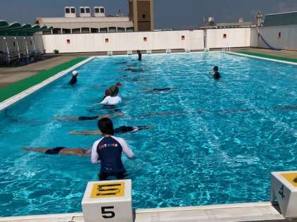 4年生のプール開放最終日です。参加人数は20人ほどで少ないですが、けのびやばた足をしっかりと学ぶことができました。特に水泳では一番大切なけのびをしっかりと練習しました。上手になりました。