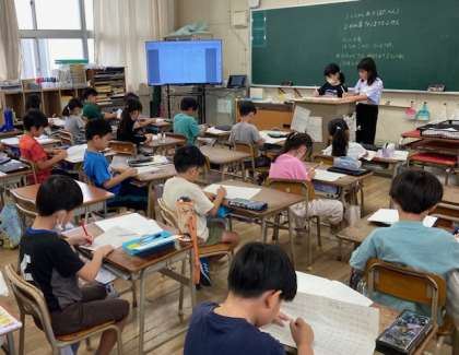 朝の時間に、学習プリントの答え合わせをしました。正しい答えの時は、みんなで「はい」と返事して確認しました。