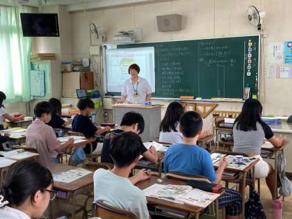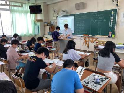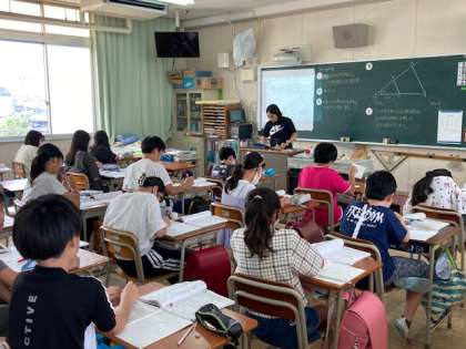 算数は拡大図と縮図を学習しています。今日は、一つの点を中心にした拡大図の書き方を考えました。社会科は平安時代の年中行事を調べ、くらしや文化についてキャッチコピーを作りました。