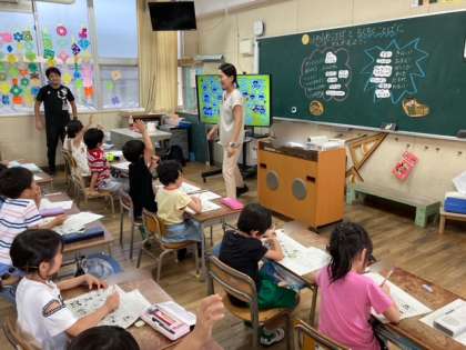 1年生の学習参観は、学級活動で「ふわふわことばとちくちくことばについて考えよう」をしました。心がうれしい、楽しい、幸せになる言葉がふわふわ言葉です。心が悲しい、怖い、困ったなど、心が傷つく言葉がちくちく言葉です。ふわふわ言葉があふれる学級になろうとがんばる1年生です。