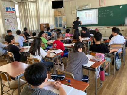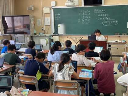 外国語(英語)は、休日の過ごし方についてたずね合い、わかったことをもとにクラスのトップ3を決めました。算数は、データにもとにして考える学習をしました。家庭科では、3R(リデュース、リユース、リサイクル)について調べたことを、タブレット端末を使って発表し合いました。