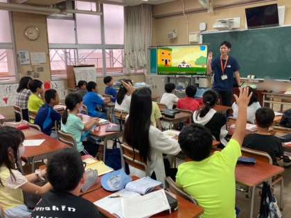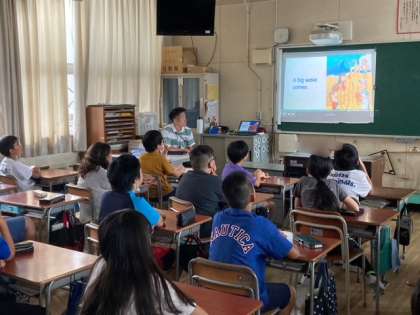水曜日の朝は、週2回、1回10分のイングリッシュタイムです。5年生の教室では、映像を見て、映像に関する質問に答えていました。また、英語の絵本を見ました。映像を見て聞き取ることができていました。
