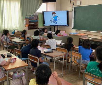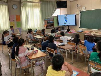 3年生が週1時間の外国語活動をしました。映像を使って、担任が英単語を発音し、それを聴いて子どもたちが発音しました。大きな声で発音できました。