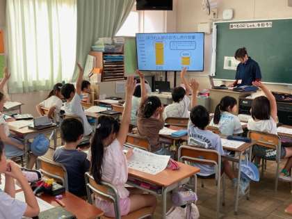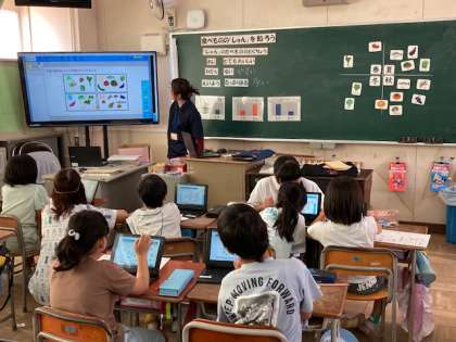 3年生が区内の栄養教諭の先生に栄養指導をしてもらいました。食べ物の「旬」を知る学習をしました。果物や野菜が一年中見られる子どもたちにとって、旬と言われても分かりにくいです。旬の食べ物の特徴を学びました。また、タブレット端末を使って食べ物を美味しい時期に分けました。旬のものを食べることで、自然の恵みや四季の変化を感じてほしいです。