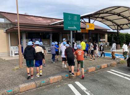 多気パーキングで2回目のトイレ休憩をしました。あと1時間ほどでスペイン村に到着予定です。全員元気です。