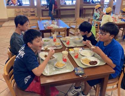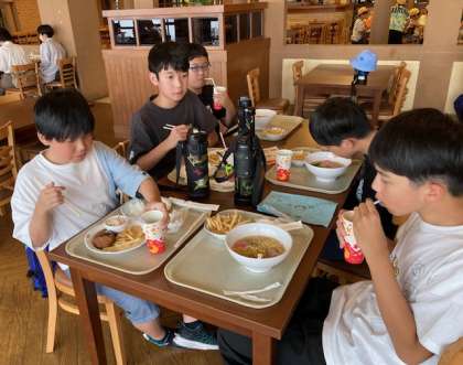 グループごとに昼食です。ミールクーポンを使って、好きなものを食べました。