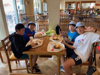 仲間と食べる昼食は、とてもおいしいですね。食べた後は、アトラクションへ。