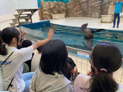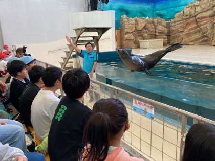 アシカショーを見ました。最前列でアシカのショーを見ることができました。