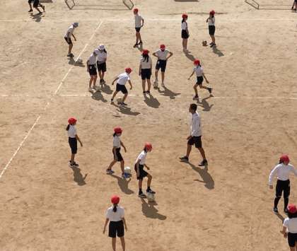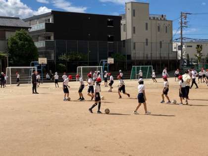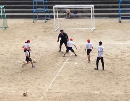 6年生がトップアスリート夢授業として、セレッソ大阪のコーチからサッカーを教えてもらいました。2人組になってドリブルやボールの取り合いをしました。最後はシュートの練習をしました。あっという間の45分でした。