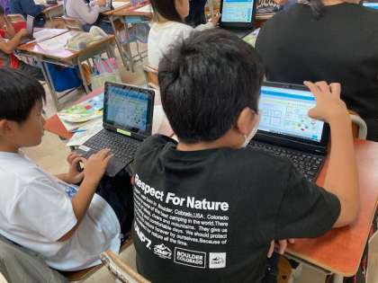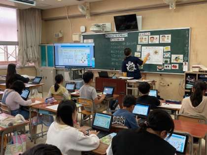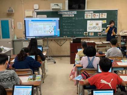 区内の栄養教諭の先生から、「朝ごはんについて考えよう」の授業を受けました。朝ごはんを食べることの良さを教えてもらいました。最後はタブレット端末を使って、赤、黄色、緑のそろった朝ごはんを考えました。