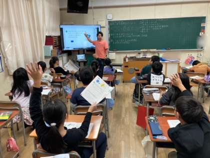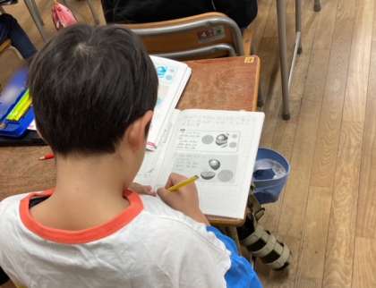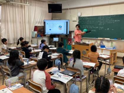 3年生が、算数「丸い形を仲間わけしよう」を学習しました。半径9cmのボールが箱にぴったり入る箱のたてと横の長さを考えました。箱のたてと横がボールの直径と同じ長さであることに気づきました。