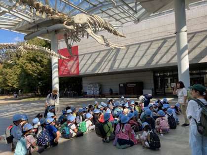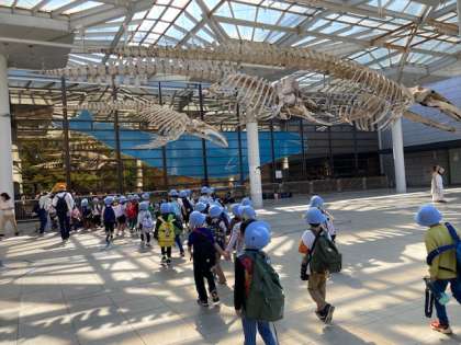 自然史博物館に到着です。恐竜の骨にビックリです。