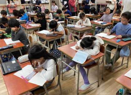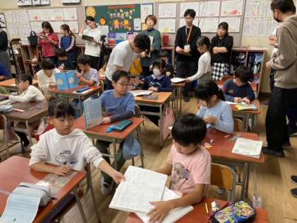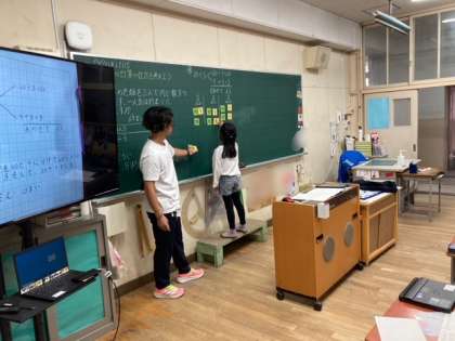 3年生が算数「69÷3の計算の仕方を考えよう」を学習しました。校内の授業研究なので、たくさんの先生方や教育センターから指導主事の先生が参観しました。子どもたちは自分の考えをペアで話し合いました。図や式、テープ図を使って、10の位と1の位に分けて計算すればよいことを学びました。