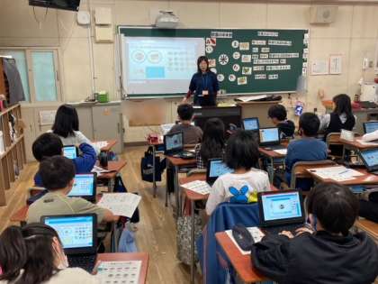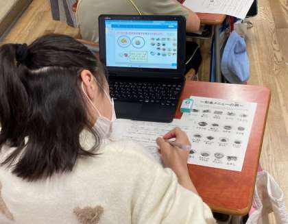 5年生が区内の栄養教諭から栄養指導をしてもらいました。年間2回な栄養指導があり、今回は和食すすめを学習しました。和食のよいところを学習した後、「まごは(わ)やさしい」を参考にして和食のメニューを考えました。