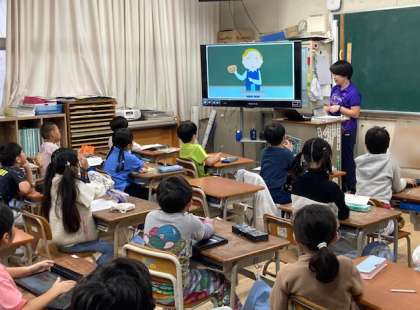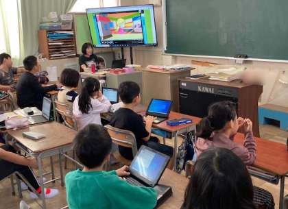 今日は、週2回のイングリッシュタイムです。映像と音声で英語と触れあっています。毎週続けると力がつきますね。