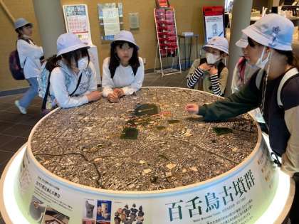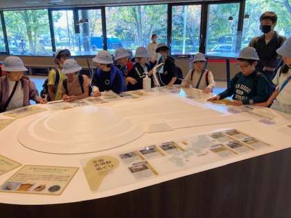 大仙公園に着きました。百舌鳥古墳群ビジターセンターに行き、古墳の展示を見たり、シアターで堺の歴史を見ました。