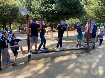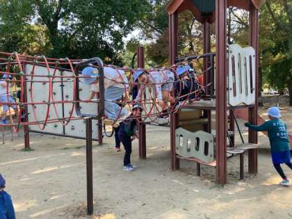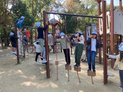 お弁当タイムの後、児童の森の遊具で遊びました。