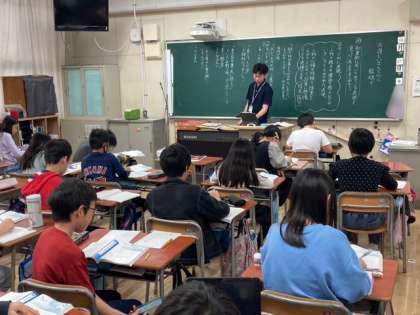 5年生がしばらくの間、教科担任制をします。学年の先生が受け持つ教科を決め、学年の全クラスの授業をします。担任の先生と違う先生から授業を受けています。新鮮な感じがしますね。