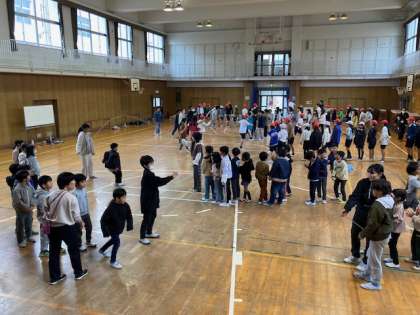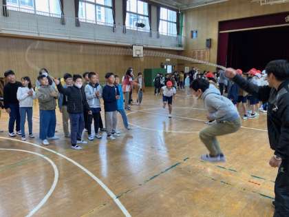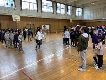 なわとび週間第2周目です。15分休み、体育館で2年と5年が大なわとびを練習し、3分間に跳んだ回数を数えました。明日から、順番に記録会が始まります。クラスの目標を越えてほしいですね。