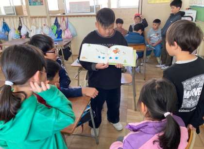 今日の児童集会は、スマイル班に分かれて班の5年生が絵本の読み聞かせをしました。前回は6年生が上手に絵本の読み聞かせをしてくれました。今回は5年生が自分が選んだ絵本をしっかりと読み聞かせしてくれました。