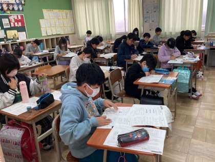 6年生が社会科や理科のまとめプリントを使って学習しました。とても集中して問題を解き、間違った問題は教科書で確認しました。